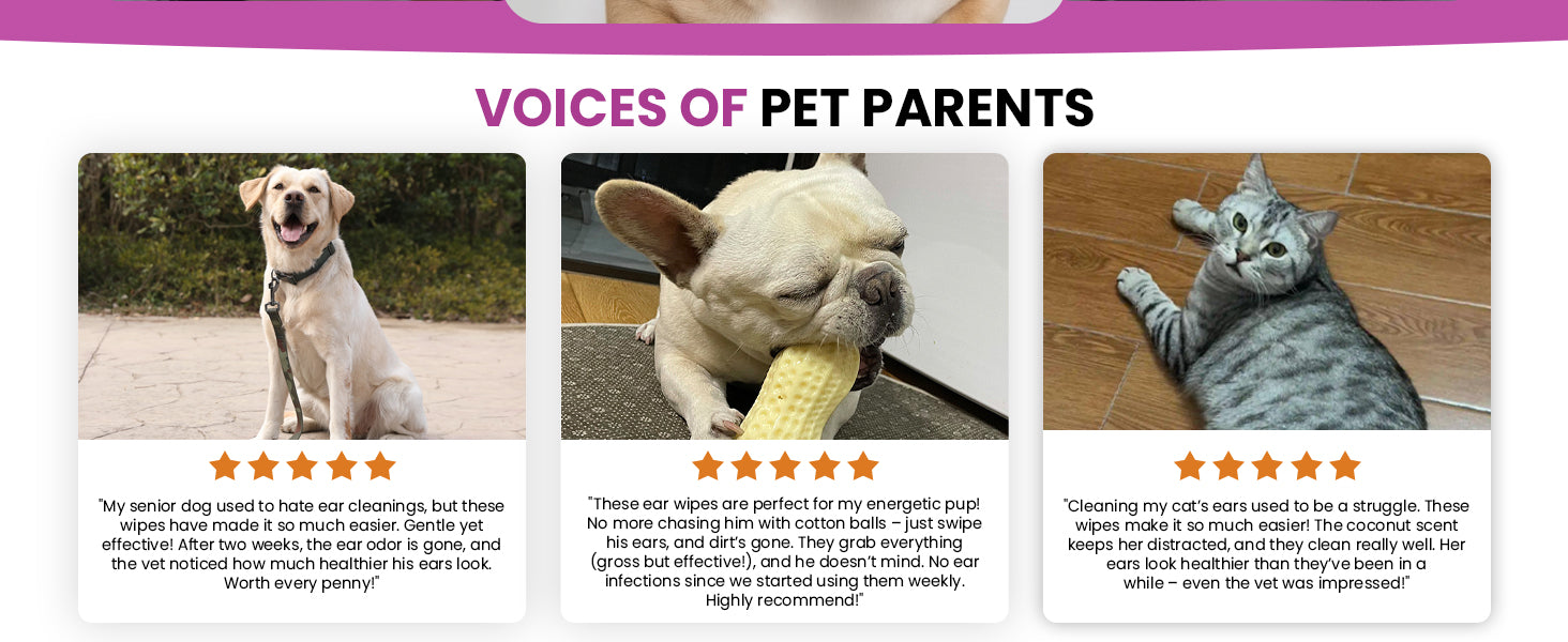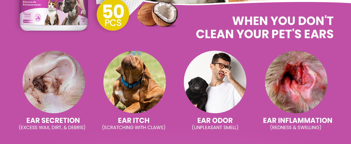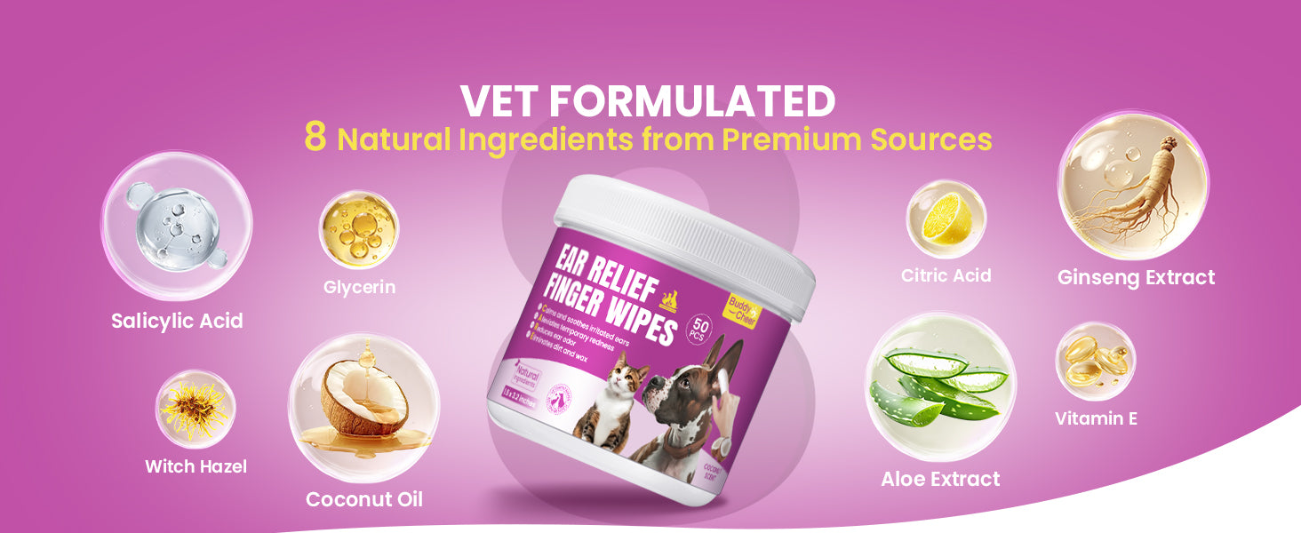 Vet-formulated wipes dissolve wax, dirt, and debris while supporting a healthy ear environment for dogs and cats. - 【Gentle, Natural Ingredients】