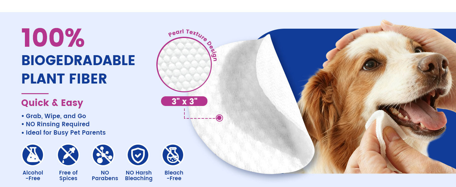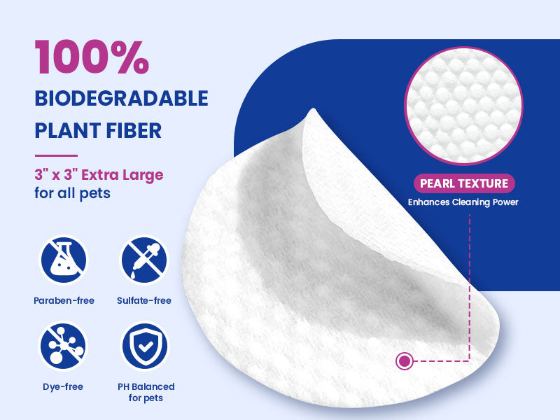 Biodegradable plant fiber wipes with pearl-textured surface gently lift away debris and tear stains—safe for everyday use.