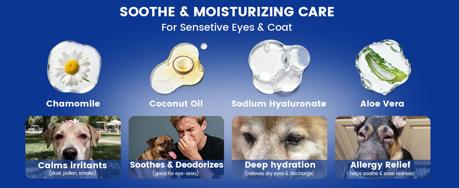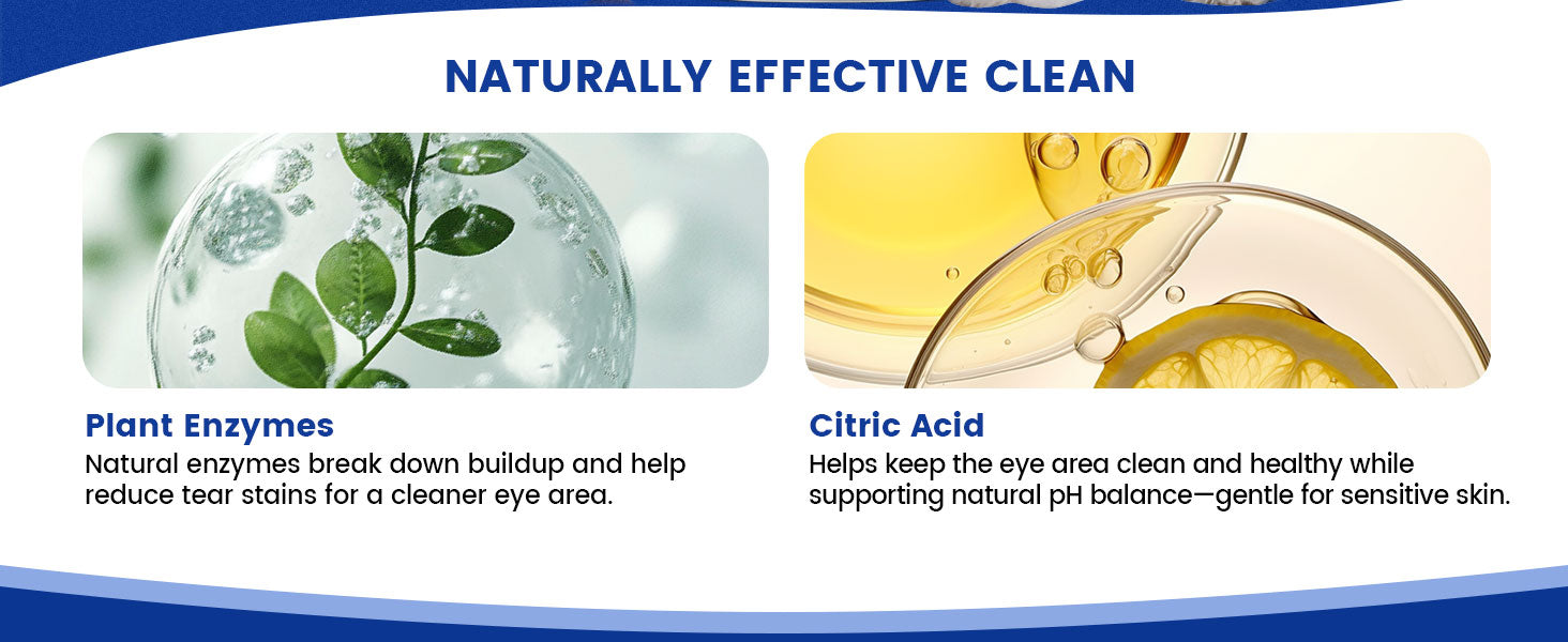 Bio-enzymes break down tear stains, mucus, and discharge, supporting a healthy eye environment for daily care. - 【Soothing & Moisturizing】
